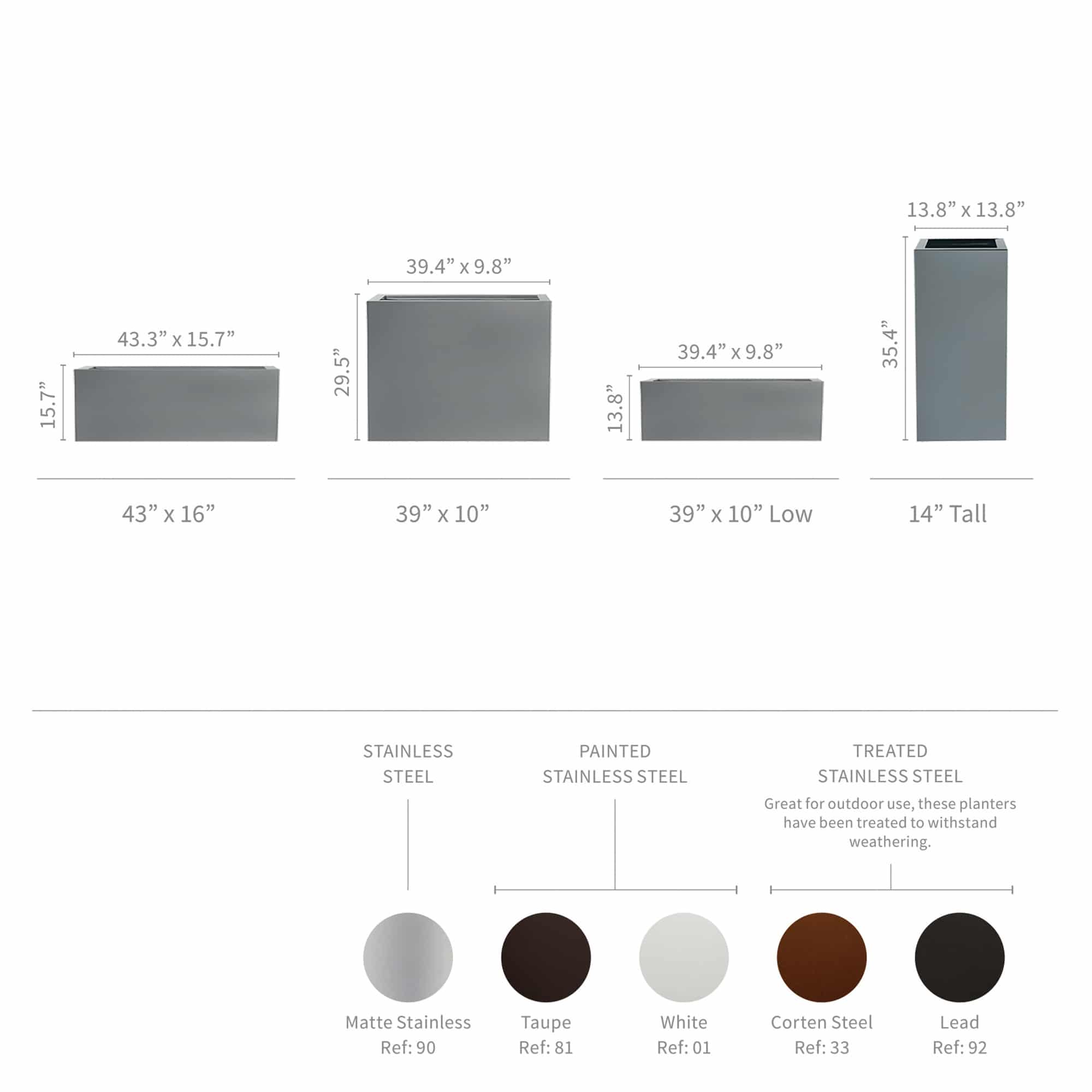 Combine with other Ferrum planters these tall planter boxes are great to divide seating areas in commercial settings. Use indoor tropical to soften the landscape and create a welcoming atmosphere for your guests.