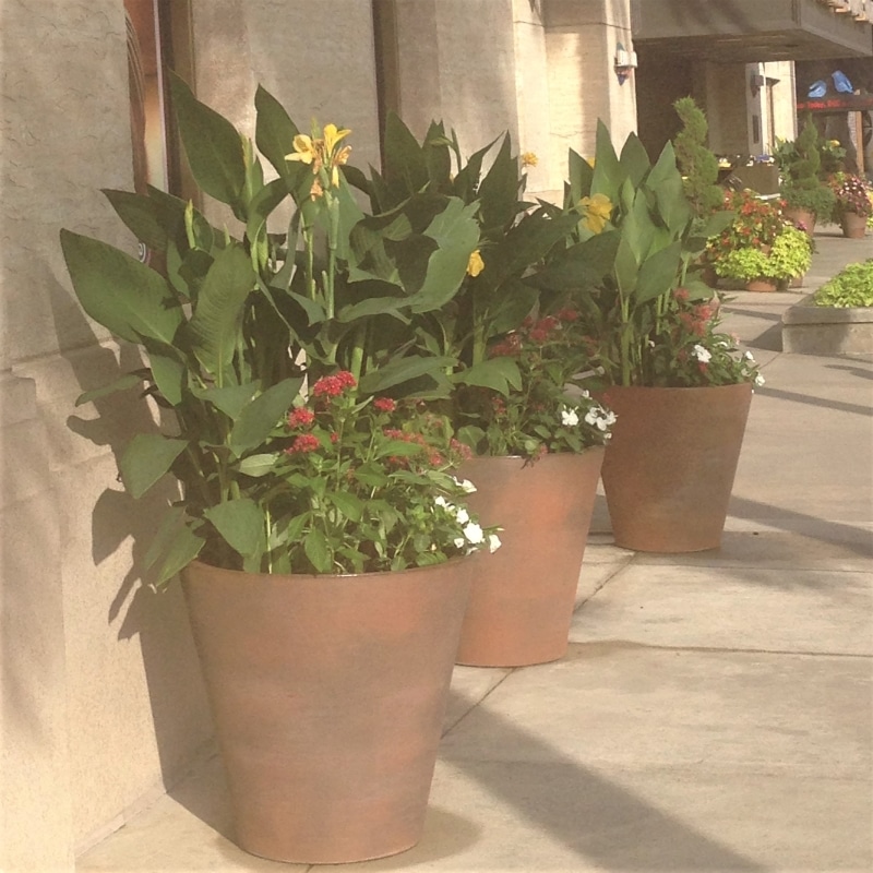 I recently purchased the Madison bark colored 14 inch pot for my daughters front porch. I also bought a 12 inch pot of flowers that fit perfectly inside the Madison so she wouldn’t have to put soil inside the pot. This pot is pretty and can stay on her porch year round in Kansas weather.
