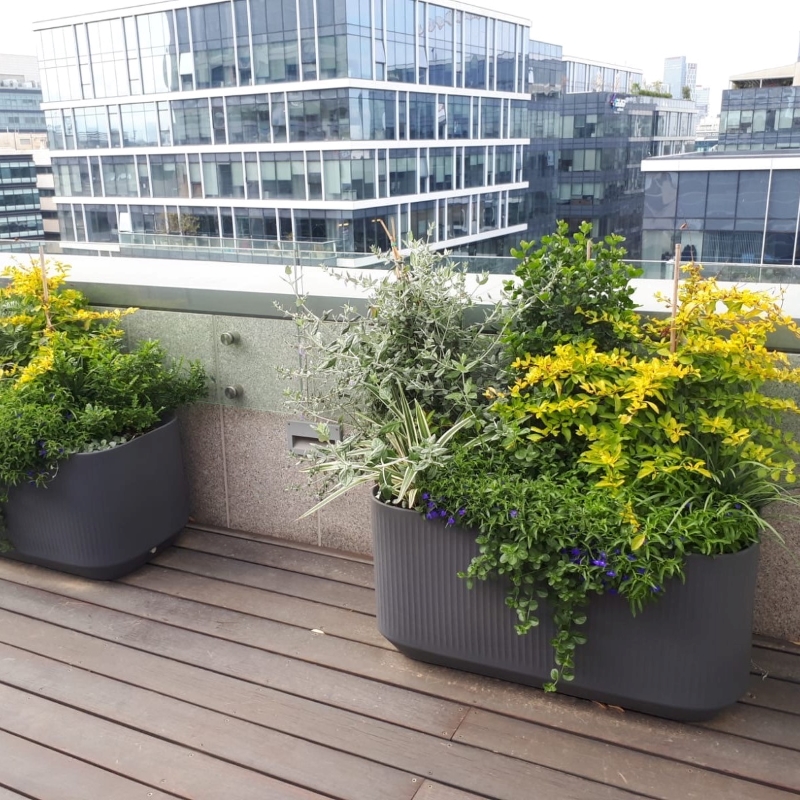 Crescent Garden’s TruDrop One self-watering planters can go weeks without watering for phenomenal results. The ingeniously designed reservoir in the planter, which reduces watering frequency and fertilizing, is an innovative environmental solution for container gardening. Our 100% recyclable and food-safe planter is resistant to chipping, cracking and fading, and results in healthier plants by watering through the root system. Using quality materials with a 10-year limited warranty, the Mod trough planters are known for their durability, designed to withstand extreme weather, and made to last.